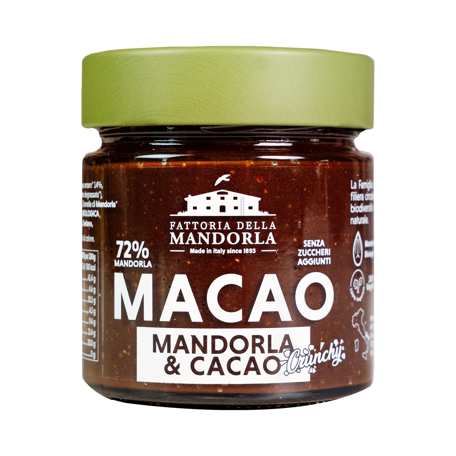 Macao Crunchy è la versione con granella croccante della nostra iconica crema mandorla e cacao, pensata per chi ama un gusto profondo, naturale e leggermente amaro, con una nuova consistenza ruvida e sorprendente.